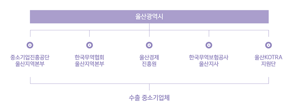 사업의 집중도와 전문성을 높이기 위해 2016년 1월부터 울산코트라지원단과 중소기업진흥공단 (수출협력팀), 중소기업 수출지원센터 등이 ‘울산경제진흥원’ 건물에 새롭게 입주하게 되었다