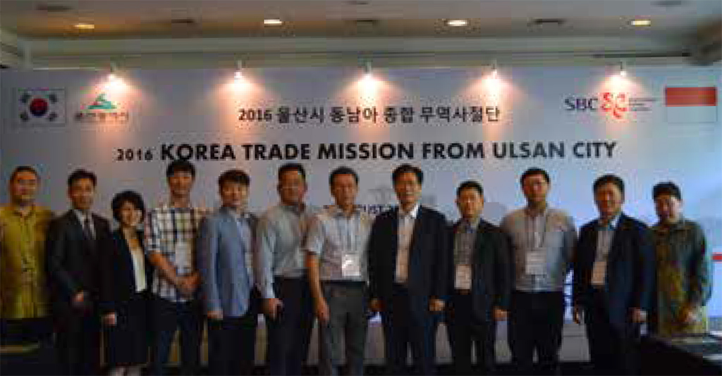 다행히 울산의 수출기업은 2014년 973개사에서 2016년 1,004 개사로 증가하는 추세를 보이고 있다. 일거리가 줄어든 중소기업 들이 위기의식을 느끼고 대기업 의존에서 탈피하기 위해 해외판 로 개척에 나섰다. 하지만 수출 경험이 일천한 중소기업이 처음 해외시장에 진출할 때는 막막하고 두려움이 클 것이다. 울산시는 해외시장 진출을 희망하면서도 주저하는 관내 중소기업을 위해 새로운 지원시스템을 구축하기로 했다. 그것이 바로 ‘울산시 해외 무역 사절단’ 이다. 중소기업을 대상으로 무역사절단을 구성하여 세계 무역거점도시에 파견, 해외 판로개척을 지원하는 이 사업은 내수 부진을 겪고 있는 울산시가 해외로 무대를 옮겨 새로운 돌파 구를 찾으려는 전략 중 하나이다.