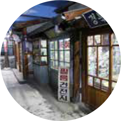 엄마아빠 어렸을 적에 군위군 산성면에 위치한 화본마을은 경상북도에서도 오지에 속하 는 곳이다. 1930년대 일제가 우리나라의 자원을 수탈하기 위해 중앙 선을 건설하며 이곳에 화본역이 들어섰다. 지금도 화본역에는 일제 강점기에 지어진 역사 건물과 동화 ‘라푼젤’에서 본 듯한 급수탑이 그대로 남아있다. 이제는 하루에 열차가 여섯 번 밖에 정차하지 않 는 간이역에 불과하지만 과거의 모습을 그대로 간직한 화본역은 ‘네 티즌이 뽑은 전국에서 가장 아름다운 간이역’에 선정되기도 했다. 이처럼 화본역이 주목을 받자 젊은 사람들이 빠져나가 휑했던 마을 도 활기를 되찾았다. 주민들이 힘을 모아 오래된 증기기관차용 급수 탑과 정미소, 방앗간, 구멍가게 등 예전 모습이 그대로 남아 있는 마 을곳곳을 ‘추억’과 ‘향수’를 덧입혀 재정비하기 시작한 것이다. 폐교 는 ‘엄마 아빠 어렸을 적에’라는 이름을 단 추억의 테마 박물관으로 새롭게 탈바꿈했다. 만화방과 연탄가게, 극장과 이발소 등 60~70년 대 풍경이 재현돼 유년의 향수를 자극하고, 분홍 소시지와 계란 프라이가 든 추억의 양은도시락과 연탄불에 구워먹는 옛날 간식은 그 때 그 시절로 돌아간 듯한 행복한 착각을 불러일으킨다. 이러한 추 억의 콘텐츠들이 입소문을 타면서 KBS 인기 예능 프로그램 ‘1박 2 일’ 등 다수의 매체에 소개되었고, 화본마을의 인기는 날로 상승해 한해 평균 15만 명이 방문하는 경쟁력 있는 마을로 거듭났다.