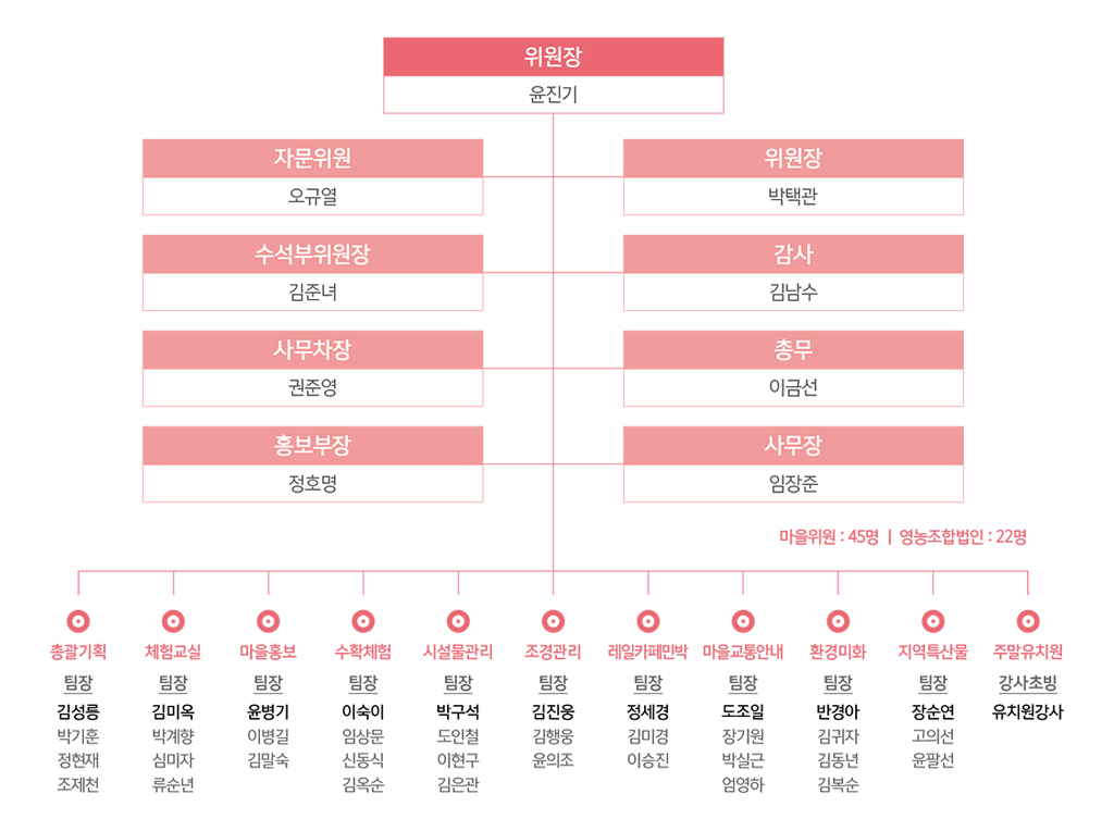 운영위원장 윤진기 수년 간 사업 내공을 쌓아 온 화본마을운영 위원회에게는 산성면과 화본마을을 잇는 콘텐츠 제공과 마을 운영 노하우 전수 등의 소프트웨어 사 업을, 추진위원회에게는 인프라 조성 및 지역경관 개선 등의 하드웨어 위주의 사업을 맡도록 한 것이다