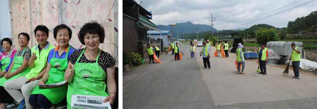 녹색군단(환경미화) 화본마을 녹색군단은, 마을을 찾는 이들이 많아지면서 화본마 을 운영위원회가 2013년에 조직했다. 화본마을 운영위원회 위원들 중심으로 구성된 녹색군단 정회원은 현재 45명 정도로, 마을축제와 같은 큰 행사가 있을 때면 그 인원은 주민 자율 참여로 크게 늘기도 한다. 한편, 녹색군단 회원이 되면 한 달에 한 번 매월 첫째주 토요 일에 열리는 마을 정기회의에 참석해야 한다. 이때 윤진기 운영위 원장이 직접 녹색군단 친절교육에 나선다.