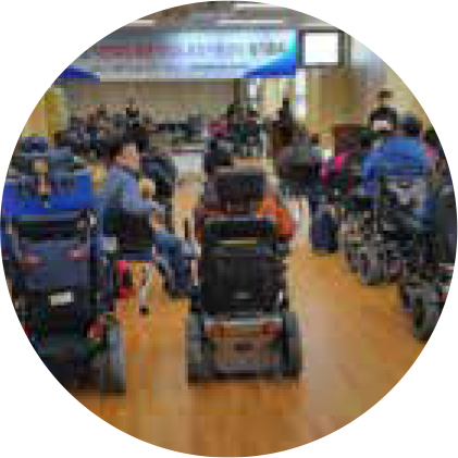장애인단체정기회의시 주민커뮤니티 이용 기다림의 성과는 조금씩 보이는 듯하다. “장애인이 여길 왜 와?” 라고 대놓고 싫은 기색을 내던 주민이 이제는 센터 프로그램실에 휠체어가 들어올 자리를 따로 마련해 놓는다고 한다