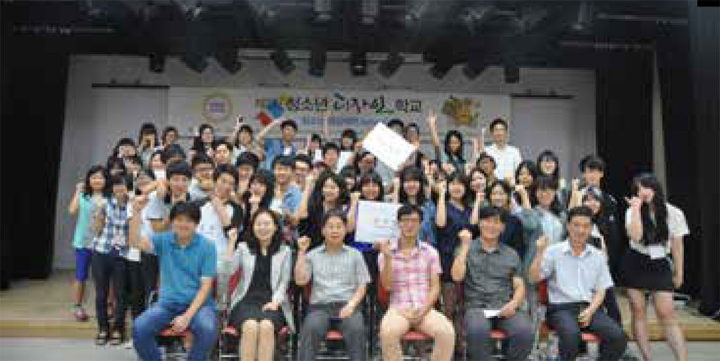 대명행복문화마을 사업의 또 하나의 특징을 꼽는다면, 주민들의 소 소한 아이디어가 그대로 적용되는 신나는 시도가 이뤄진다는 점이 다. 주민의 참여에 의해 마을이 모습을 갖춰 가는 과정은 주민들에게자부심은 물론 지역에 대한 애착을 심어준다. 남구는 ‘도시재생대학 (주민마을학교)’과 지역대학생 42명으로 구성된 ‘도시재생서포터즈’ 를 운영하고 있다. 이를 통해 주민과 지역대학생들은 사업에 대한 이 해도를 높이고, 참신하고 창의적인 아이디어를 자유롭게 제안할 수 있다. 주민마을학교와 도시재생서포터즈의 아이디어가 실제로 반영 된 대표적인 사례를 꼽자면, 계명대 테니스장 노후 담장 담벼락 그림 그리기와 계명대 서편 담장 내 조형물 설치 사업을 들 수 있다.