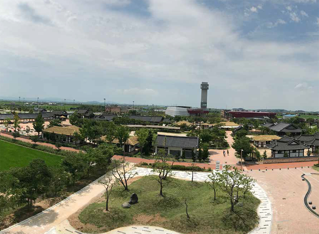 벽골제 마을 전경 “초록빛으로 가득한 들녘끝은 아슴하게 멀었다. 그 가이없이 넓은 들의 끝과 끝은 눈길이 닿지 않아 마치 하늘이 그대로 내려앉은 듯 싶었다. 그 푸르름 속에서 일하고 있는 사람들은 움직임을 느낄 수 없는 채 멀고 작은 점으로 찍혀 있었다.” 조정래의 대하소설 『아리 랑』. 일제강점기, 민족의 한(恨)을 풀어가는 긴 이야기는 아이러니 하게도 풍요롭고 드넓은 김제만경에서 시작된다.