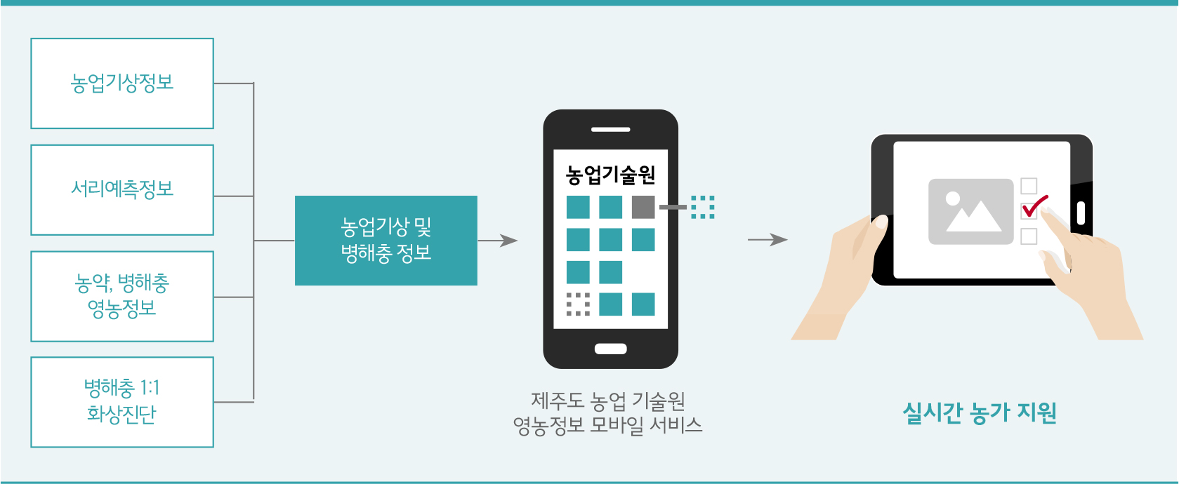 사업을 시작한 것은 신양수 과장이었지만, 이후 뿌리를 내리게 도운 것은 후임인 강병수 계장이었다. 처음엔 농가에 SNS로 센서 내용을 전송하는 것이 전부였지만 이후 스마트폰 보급이 활성화되면서 기상정보를 실시간 전달할 수 있는 어플리케이션 ‘제주영농정보’ 개발이 이루어졌다. 현재는 농업인 개개인의 궁금증을 해소할 수 있는 영농상담 메뉴도 개설되어 운영되고 있으며 농업인들과 전문가들 간의 다양한 정보교환이 자연스럽게 이루어지는 온라인 커뮤니티도 활발하게 운영 중이라고 한다.