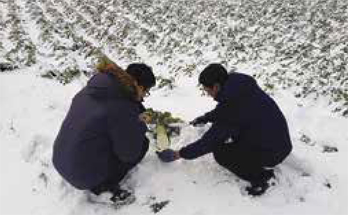 월동무 언피해 지역 현장조사 동부센터얼마 전 새가 둥지를 튼 고가의 기상장비 사진이 SNS에 떠돌면서 논란이 된 적이 있다. 그만큼 관리가 힘든 것이 기상장비이기도 하다. 제주도의 IT 접목 예방시스템이라고 완벽할 수 있을까? 어쩌면 인간만큼이나 다루기 힘든 것이 기계일 것이다. 특히 자연환경을 측정 하는 기상장비의 경우, 주변에서 불을 피운다거나 장비가 물리적으로 손상될 때 오류 발생 빈도가 높다. 지속적으로 센서에 오류가 있는지 들여다볼 수도 없기 때문에 무엇보다 담당자의 업무에 대한 애정이 중요하게 작용할 수밖에 없다.