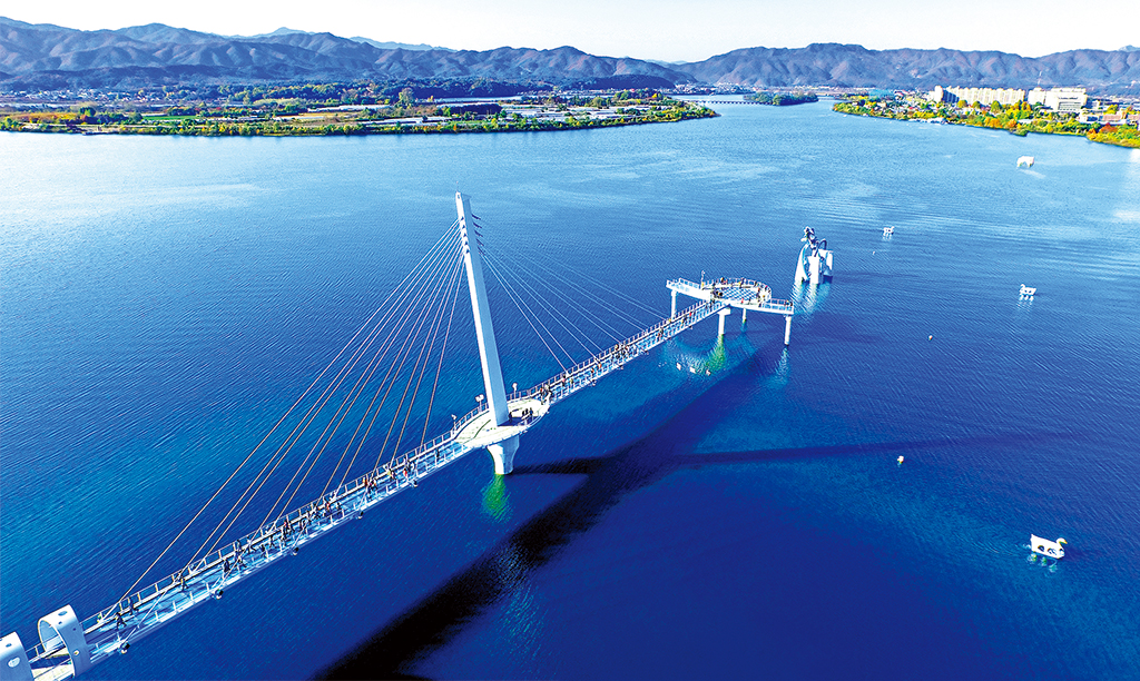 기존에 마무리되었거나 진행되고 있는 사업들과의 연계도 고 려되었다. 새로 시설물을 만들거나 관광지를 조성하기보다 이미 만 들어진 시설물과 연계하는 방식으로 사업을 진행했다. 소양호와 의 암호 일대에는 이미 자전거길이 조성되어 있었다. 자전거길을 이용하는 관광객들이 이용할 쉼터나 편의시설이 부족하다는 문제가 계 속 제기되어 시설물 조성을 계획 중이었다. 2016년에는 소양강 처 녀상 근처에 스카이워크가 준공되었다.