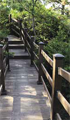 탐방로 그랬던 장도 사람들이 청정갯벌과 장도에서의 삶을 자랑하기 시작했다. 꼬막과 낙지, 굴과 바지락을 풍부하게 공급하던 갯벌의 풍요로움이 소중함을 알게 되었고, 장도에 더 많은 관광객이 오기 를 기대하게 되었다. 장도밥상을 진행하면서 인연을 맺은 관광객이 인터넷에 함께 찍은 사진을 올리면 뿌듯했다. 장도를 찾은 관광객 을 실망시키지 않겠다는 자신감도 생겼다. 산이 없어 시야가 탁 트 인 장도에서 올려다본 하늘이 유독 쾌청하고 아름답다고 자랑하는 일도 잊지 않는다.