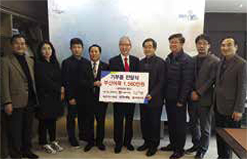 (사)부산어묵전략식품사업단은 비영리법인으로서 사회 환원에도 앞장서고 있다. 어묵을 나누는 푸드 쉐어링은 대표적인 후원 사업 이다. 나눔 냉장고를 통해 끼니 해결이 어려운 이웃과 음식을 나 누며 이웃사랑을 실천하는 푸드 쉐어링에 6개 회원사가 자발적으 로 참여하고 있다. 매주 한 번씩 회원사가 번갈아가며 다대동, 장 림동 주민들에게 어묵 제품을 기부하는 것이다. 2018년 3월에는 6개 회원사가 1,560만 원 상당의 기부품을 부산시 사하구청에 전 달하기도 했다. 부산 어묵 축제를 개최할 때는 1천만 원 상당의 금 액을 아낌없이 내놓으며 협력하는 등 (사)부산어묵전략식품사업 단과 6개 회원사는 사람들의 마음까지 데워주는 따뜻한 어묵 한 그릇이 되어주고 있다.