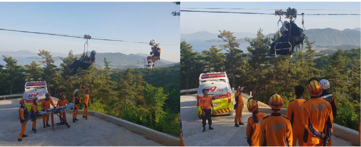 짚와이어 시설에서 가장 흔한 안전사고가 충돌이다. 앞서 가던 사람의 트롤리가 내려가지 않아 뒷사람과 부딪히는 경우다. 하동의 짚와이어 시설은 전자동으로, 관제시스템을 잘 갖추고 있다. 한명이 라인에서 이탈을 해야만 또 다른 사람이 내려갈 수 있는 구조다. 하지만 아주 낮은 가능성이라도 놓칠 수 없었다. 만에 하나라도 트롤리가 정지할 경우를 대비해야 했다. 이를 위해 ㈜하동알프스레포츠는 구조용 트롤리를 개발하고 짚와이어 안전관리에 관한 자체 매뉴얼도 제작했다. 이 구조형 트롤리 또한 특허출원을해 현재 심사 중에 있다.