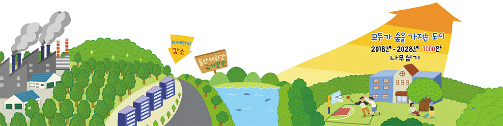 “열섬현상에 숲보다 좋은 것은 없습니다. 또 전통적으로 공업도시의 이미지가 강한데 그것을 바꾸고 싶었습니다. 시민들이 쉴 공간이 필요하기도 했고요.” 울산광역시 녹지공원과 배도권 녹지주사는 말한다. 울산시는 공장과 항구가 떠오르는 도시에서 녹색 도시로의 변신을 꿈꿨다. 2000년 1월, 지자체 도시숲 조성사업은 그렇게 시작되었다.
