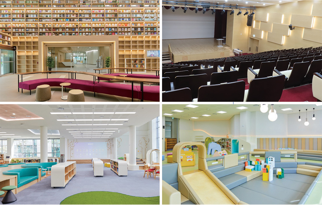 로비/공연장/어린이자료실/ 영유아자료실 책 읽는 공간과 공연장, 컨퍼런스룸, 카페 등 각종 편의시설을 갖춘 복합 문화 공간을 보고, 철학자 최진석 선생은 도서관에서 개최한 특강에서 “대한민국에서 격이 다른 도서관이 탄생했다”며 칭찬을 아끼지 않았다.