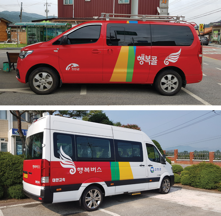 저마다 자랑하듯 새 차에 산뜻하게 옷을 입었다. 진안군 행복콜버스는 빨갛게, 완주군 행복콜버스는 온 몸을 새하얗게, 고창군 행복콜버스는 하얀색에 포인트를 주어 저마다 개성 있다.