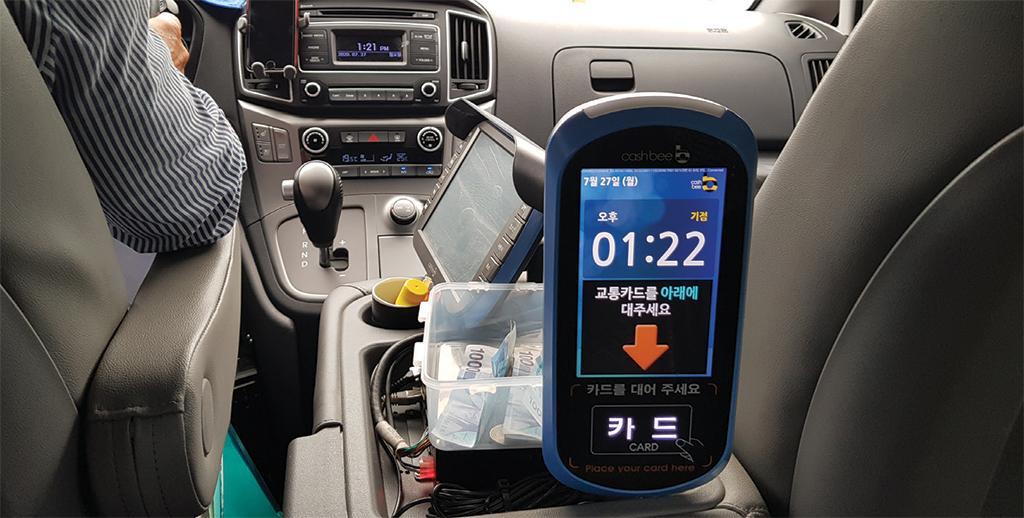 요금 단말기 운전석 뒤에 달린 요금 단말기는 여타 버스의 요즘 단말기와 똑같이 생겼다. 진안군 행복콜버스 요금 단말기 뒤에는 현금통도 놓여 있다.