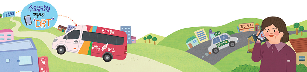 ] 수요응답형교통(DRT)이라고 들어보셨나요? 전북 콜버스가 얼마나 편리하고 획기적인지 홍보하고 있는 장면이다. 무엇보다 장점은 대중교통에서 소외된 지역이 없도록 해 준다는 것.