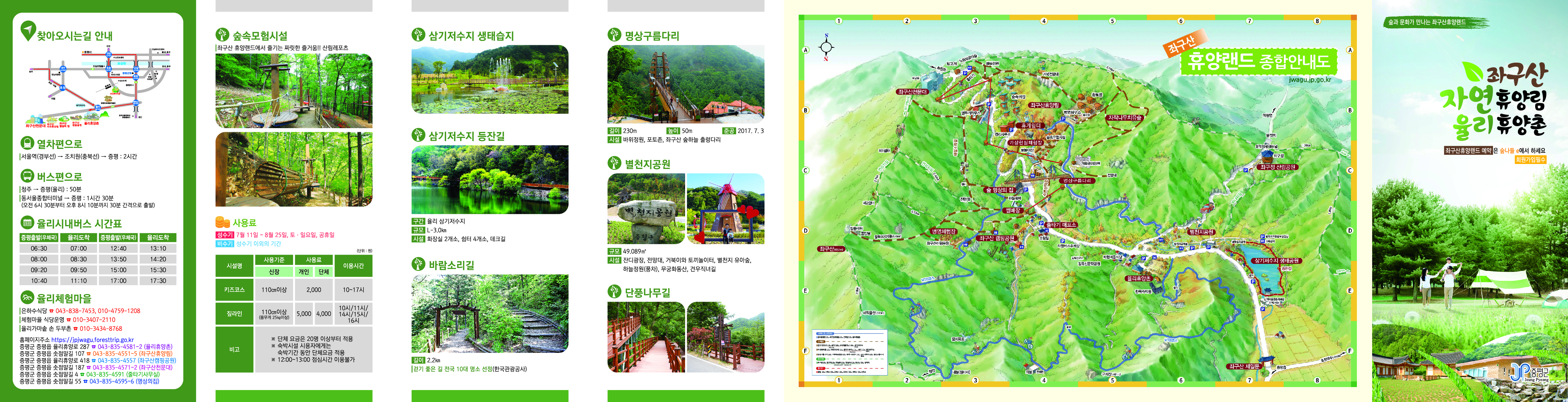 저희 좌구산휴양림은 군민·방문객의 생명과 재산을 보호하고자 2018년도 좌구산휴양림 복합재해 대응 실태조사를 실시하고 그에 따른 결과를 사업에 반영하였습니다. 2020년도부터 2022년까지 3년간 총사업비 40억원을 투입하여 연차별 계획에 따라 산사태 방지시설 설치, 오수관로 정비, 썰매장 레인 가이드 설치 등을 추진하였습니다. 더욱 쾌적하고 안전한 휴양림 조성으로 지역균형 발전은 물론, 이용객들의 만족도를 향상 시켰습니다. 이는 방문 관광객 확대로 이어져 지역경제 활성화에도 큰 기여를 하였습니다. 좌구산 자연휴양림은 짙은 녹음속에서 불어오는 상쾌한 바람을 이 곳에 찾아오는 많은 사람들에게 가득 선물해 드릴 것입니다. 이것이 곧 저희들의 꿈과 소망입니다. 자연 보존과 존중을 모토로 좌구산 자연휴양림의 지속가능한 발전을 추구하고자 합니다. 자연과 하나되는 보완 사업으로 산업·도시화에 지쳐 심신의 안정이 필요한 국민들에게 편안한 휴식공간을 제공하고 특색있는 프로그램 개발로 산림복지 혜택을 마음껏 누릴 수 있도록 하여 대한민국 대표 산림 휴양관광지로 도약할 수 있도록 노력하겠습니다.
