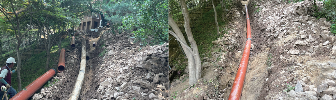 두 번째, 오수관로 보완공사는 2021년 1월부터 6월까지 6개월간 진행되었으며, 사업비는 199백만 원이다. 휴양림 내 오수관로와 오수받이를 정비함으로써, 하수의 흐름을 원활히 하고 환경오염을 예방하는 데 힘을 보탰다.