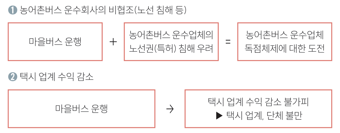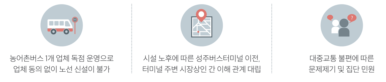 사업을 시작하며 제일 먼저 맞닥뜨린 문제는 기존 운송회사와의 이해 마찰이었다. 당시 성주군 내에서는 운수회사 한 곳이 버스 운영을 독점적으로 하고 있었다. 때문에 업체의 동의 없이는 노선을 신설하는 것이 불가능했다. 성주군은 운수회사와의 적극적인 협의를 시도했다.