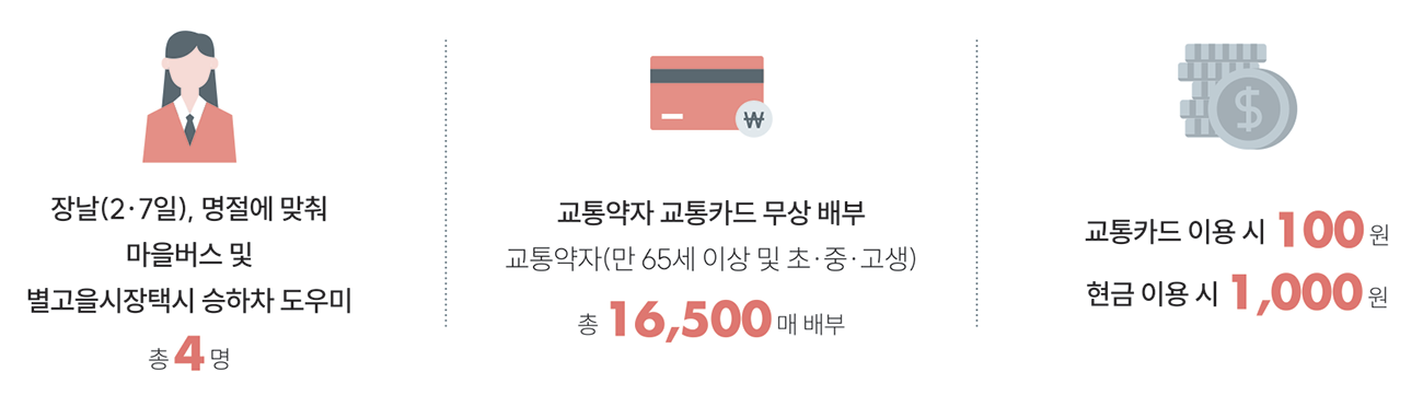 교통 복지의 가장 큰 핵심은 군민들이 원하는 목적지에 ‘안전하게’ ‘편리하게’ 이동할 수 있도록 교통시설과 수단을 제공하는 데 있다. 모두의 이동편의 증진을 위한 성주군의 노력으로, 성주 군민의 일상의 복지 실현이 현재 완성되고 있다.