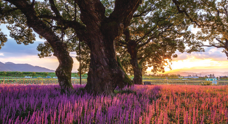 이름 그대로 ‘성밖에 조성된 숲’이다. 그 이름 뒤에는 성주의 다양한 역사와 생활사가 담겼다. 원래 이곳은 밤나무 숲으로 이뤄져 있었는데, 임진왜란 이후 왕버들로 숲이 재조성되었다는 이야기가 있다. 왕버들로 장관을 이루는 이곳은 특히 여름에 아름답다. 왕버들과 어울리는 보랏빛 맥문동이 그림 같은 풍경을 연출 한다. 숲을 걸으며 숲의 정취를 느낄 수 있는 공간으로 사랑받는 장소다.