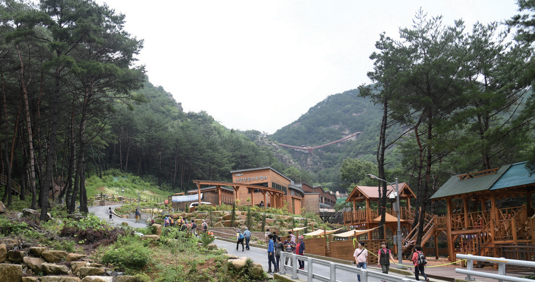 “Y형 출렁다리를 만든 것은 저희가 전국 최초입니다. 설계과정에서 전문가의 자문을 꼼꼼히 받아 안정성에 가장 주안을 두었어요. 지역경관과 자연자원에 특화된 차별화 요소 발굴을 염두에 두고 사업을 추진했는데, 저희가 생각한 것 이상으로 반응이 좋아 매우 뿌듯합니다. Y형 출렁다리가 만들어지기 전에는 우두산을 완등하는데 2시간 30분이 걸렸어요. 물론 등산을 즐기는 분들에게는 큰 문제가 아닐 수 있지만, 가볍게 트래킹 하는 마음으로 산을 맛보고 싶은 분들께는 다소 부담스러운 시간이긴 했죠. 우두산에는 총 3개의 등산로가 있습니다. 이것을 하나로 잇는다면 등산시간이 단축되지 않을까 생각한 게 이 아이디어의 출발이었어요. 실제로 등산시간을 대폭 단축시켜, 2시간 30분이 걸리는 등산시간을 40분으로 줄일 수 있었어요.”