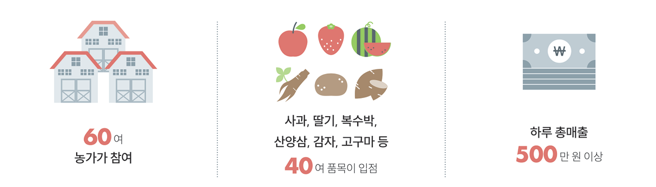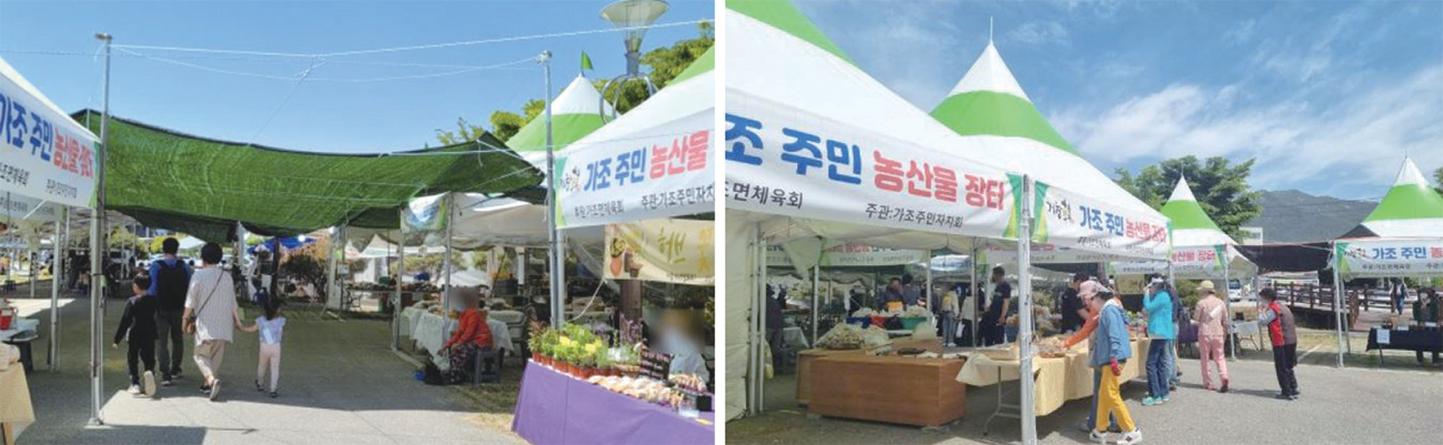 거창군은 지역주민들과의 협력을 이뤄내기 위해 항노화 힐링랜드 임시주차장 부근에 가조면주민자치위원회와 가조면체육회가 운영주체가 되어 지역농가들이 참여하는 농특산물 판매장을 셔틀버스 운행기간(3월~12월)에 맞추어 운영하고 있다. 몽골텐트 9동으로 꾸려져 60여 농가가 참여하고 있는 농산물판매장은 지역특산물인 사과, 딸기, 복수박, 산양삼, 감자, 고구마 등 40여품목이 입점해 있다. 주말에만 운영하고 있지만 이곳을 방문하는 방문객이 꾸준히 증가하면서 지역농가들은 하루 총매출 500만 원 이상을 기록하는 등 농가수익증대와 지역 농특산물 홍보에 일등공신이 되고 있다.