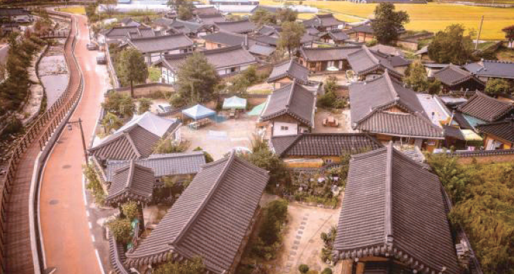 뒷산에서 호랑이 울음소리가 난다고 하여 호음산으로 불리는 땅에 위치한 황산전통한옥마을. 땅의 색이 누렇게 보이고 아침에 안개가 끼어 있어 하얗게 보인다고 하여 황토백산이라고도 불린 이곳은 줄여서 황산이라는 이름으로 전해 내려오고 있다. 한국에서 가장 아름다운 마을 제7호로 지정될 만큼 고풍스럽고 아늑한 모습이 절경이다. 마을 안에 있는 약 1.2km의 옛 담장(등록문화재)은 전통고가와 어우러져 매우 고즈넉하고 아늑한 느낌을 준다.