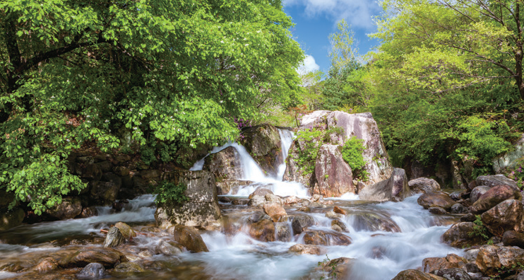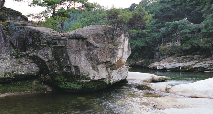 월성은 흔히 ‘하늘마을’로 불리곤 한다. 덕유산과 지리산, 가야산 등 높은 산들이 병풍처럼 둘러싸인 거창에서도 지대가 높고 산세가 아름답기 때문이다. 월성계곡은 남덕유산(1507.4m) 동쪽 자락의 월성천을 따라 형성된 길이 5.5km의 계곡으로, 계곡의 폭은 그렇게 넓지는 않지만 주변 산세가 워낙 거대해 수량이 풍부하기로 유명하다. 계곡 물놀이와 더불어 젖은 옷과 몸을 말리기에도 좋은 바위들이 여기저기 눈에 띈다. 크지 않지만 폭포의 위용을 느끼기에 충분하다.