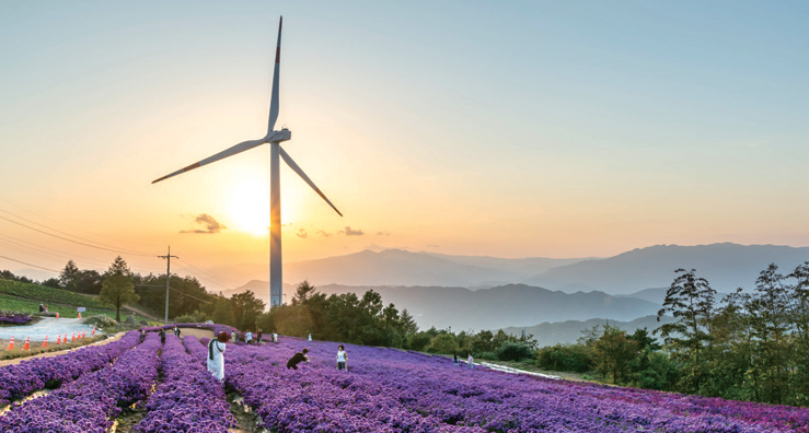 ‘핫플레이스’라고 불릴 만큼, 많은 사람의 발길이 끊이지 않는 공간이다. 무엇보다 감악산 정상에 펼쳐진 아스타와 구절초는 풍력단지와 어울려 이색적인 풍경을 자아낸다. 원래 이 공간은 고랭지 채소와 약초를 재배하던 공간으로, 거의 황무지 수준으로 관리되던 곳이었다. 변화가 시작된 건 2016년 ‘항노화 힐링특구’로 지정받으면서부터다. 그 이후 여름이면 샤스타데이지가, 가을이면 아스타와 구절초 그리고 억새가 장관을 이룬다.
