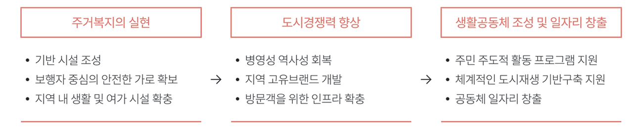 따라서 이러한 문제를 해결하고자 중구청은 지역공동체 회복 및 지역경제 활성화를 위한 도시재생사업을 추진하게 되었다. 주거지 노후화와 도심과의 단절에 따른 상대적 박탈감을 극복하고, 문화재 보존을 통한 지역의 존재감 부각과 자긍심 향상이 이번 사업의 목적이다.