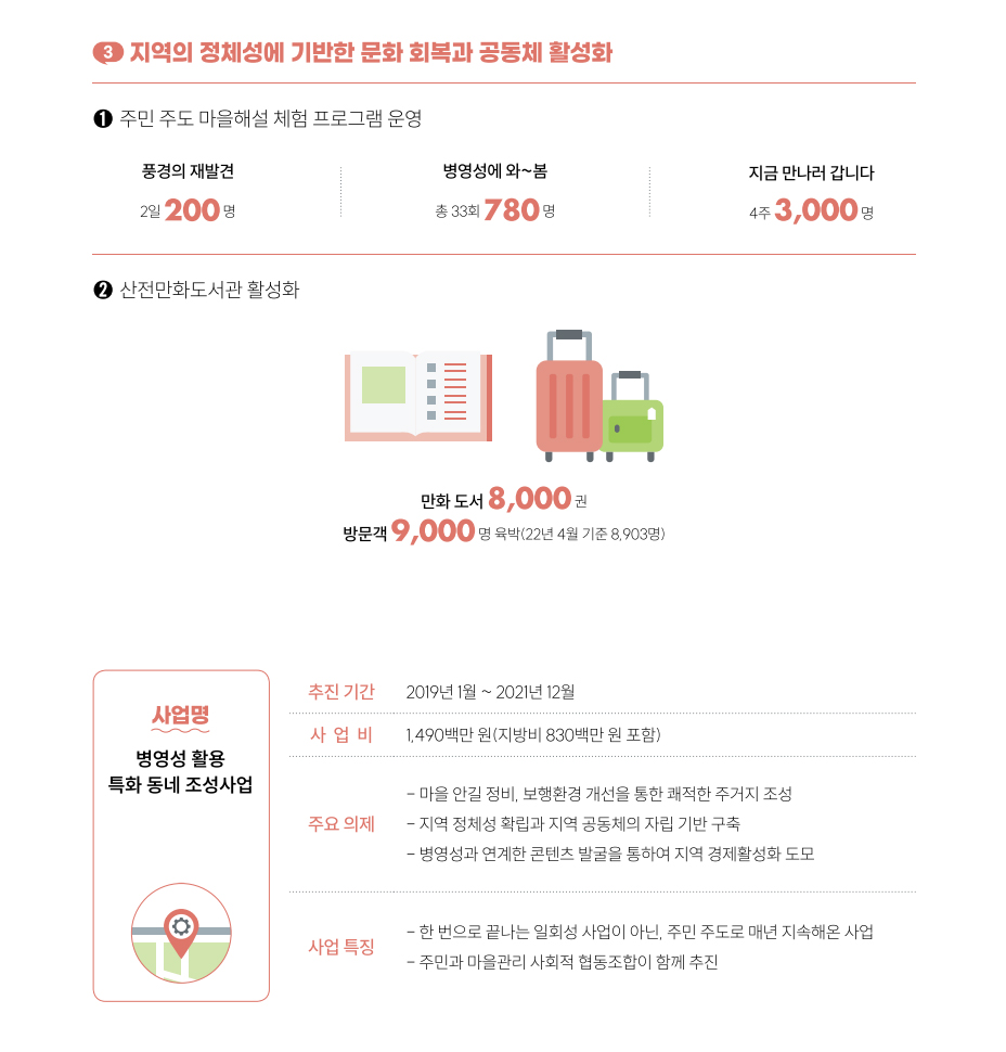 참여한 주민들은 병영성이 단순한 산책길이 아니었고, 이토록 중요한 곳에 우리 마을이 생겼다는 데 자부심을 느꼈다고 한다. 이름 그대로 풍경의 재발견인 셈이다.