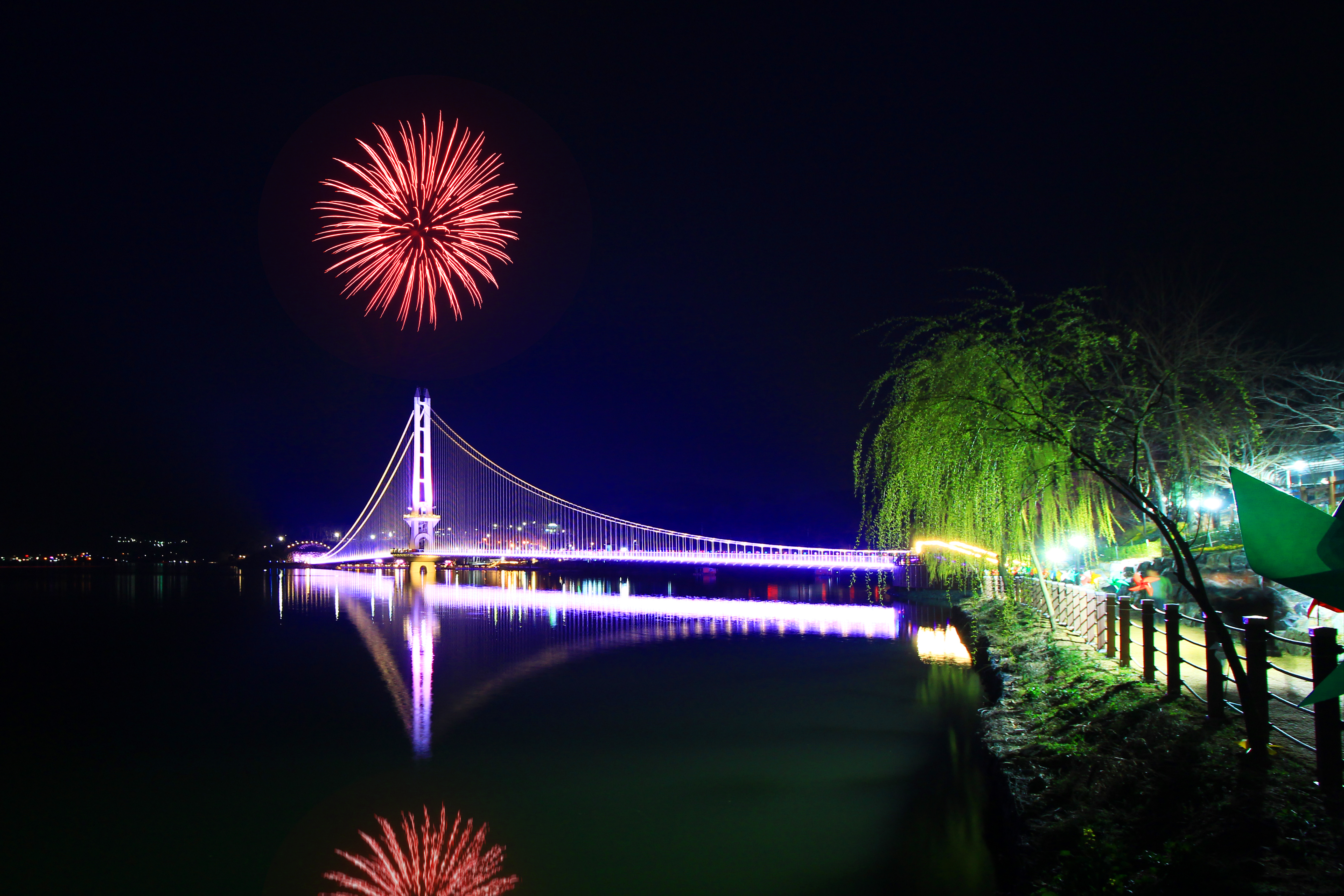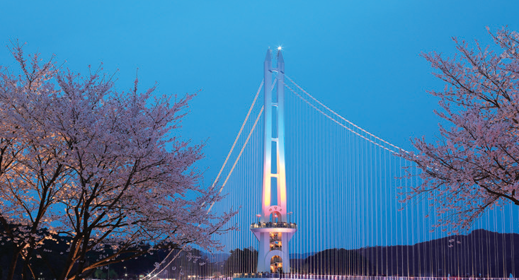 국내에서 가장 큰 저수지인 예당호에는 무려 402m의 최장 길이를 자랑하는 출렁다리가 있다. 내진설계 1등급으로 튼튼하게 지어진 출렁다리는 성인 3,150명을 동시에 수용이 가능해 온 가족이 함께 걷기에도 좋다. 출렁다리에서 예당호 중앙생태공원까지 이어지는 느린호수길을 따라 천천히 걸으면 아름다운 호수 뷰를 감상할 수 있다. 특히 감미로운 음악과 다채로운 경관을 보여주는 음악분수와 함께 밤에는 형형색색의 LED 조명으로 꾸며 몽환적인 분위기를 자아낸다.