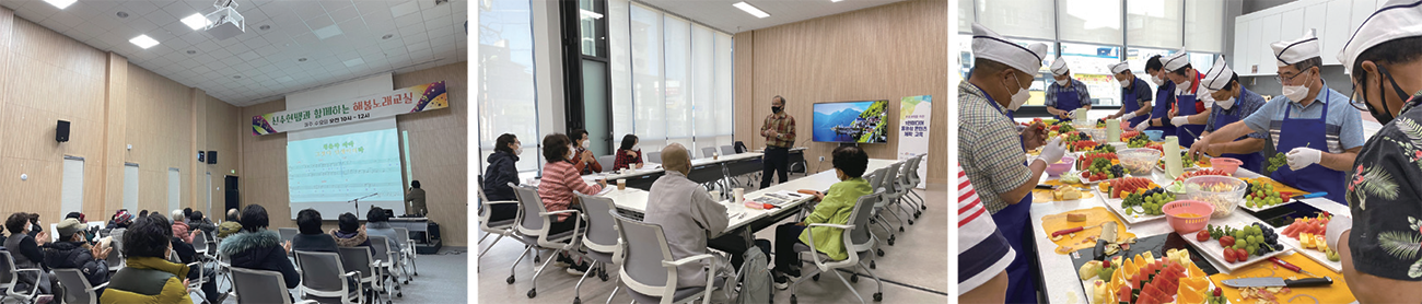 | 제1차 행복플러스학교 (공통과정) | - 7개팀: 쓸걱(1) 사업아이디어 중점으로 그룹화하여 총 7개 (로컬여행, 농가맛집, 농산물유통, 마을유산, 마을축제기획, 주거환경, 마을정원 분야) 소그룹 구축 - 주민활동팀 육성에 대한 사업 초기 모델로 주민조직 그룹화 시행착오와 코로나19로 활동 중지로 인해 많은 주민활동팀 중도 포기 |