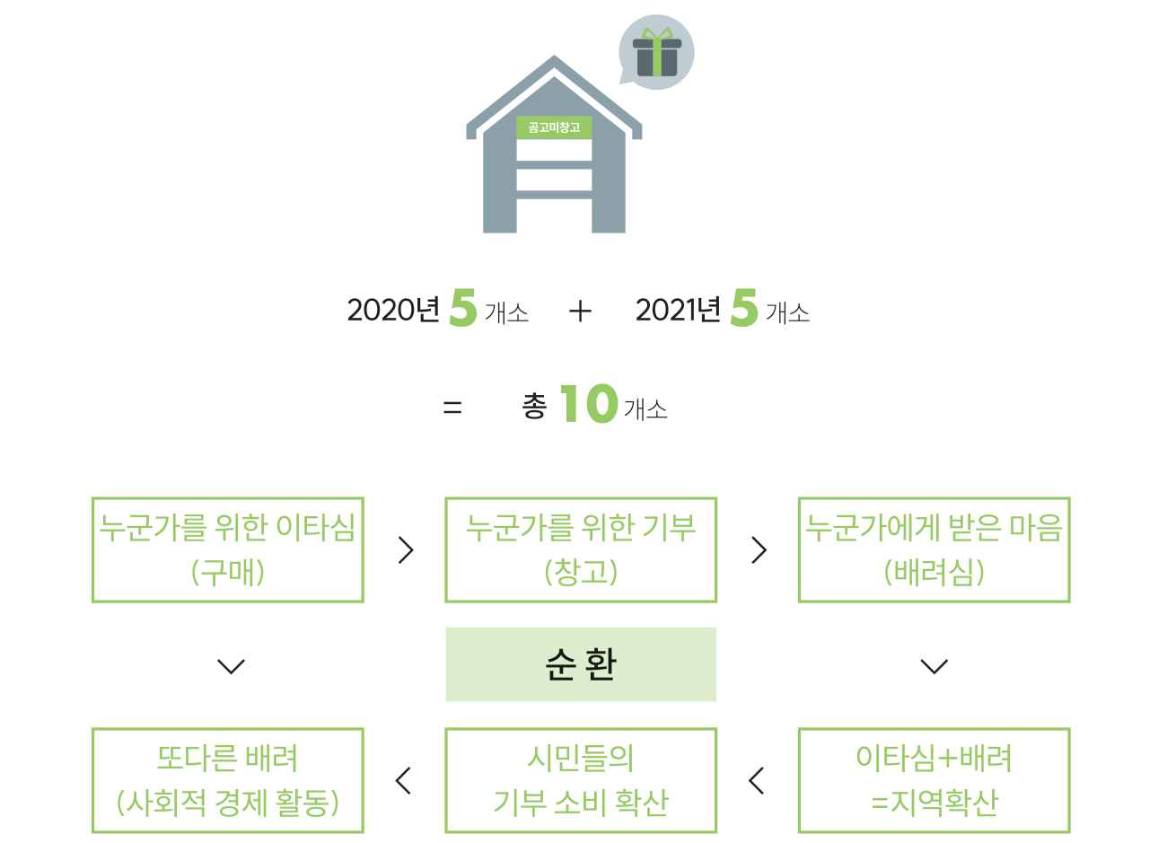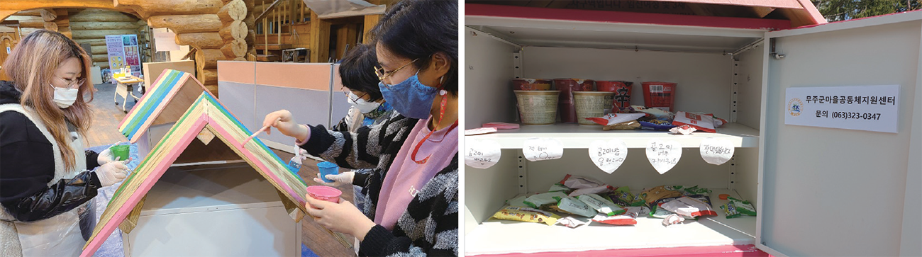 | · 곰고미 나눔창고 설치 - 안성면시장, 적상면 행정복지센터, 설천 내북마을, 무주읍 행정복지센터, 부남우체국 | |
