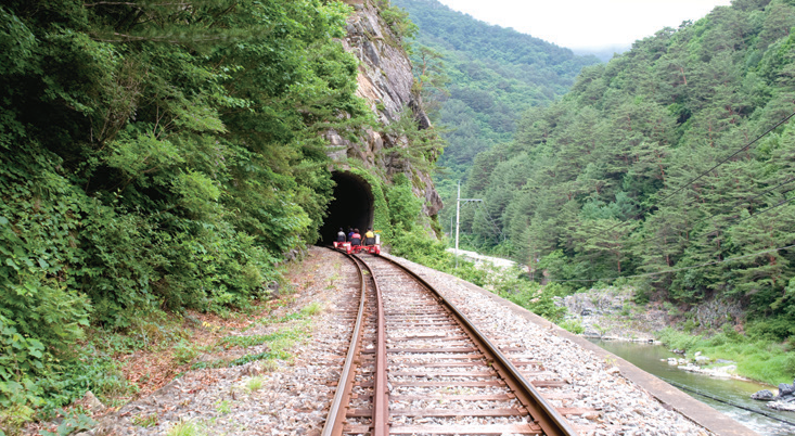 정선 레일바이크는 강원도 정선의 구절리역에서 출발해 아우라지역까지 약 7.2km를 운행하는 철길 자전거다. 정선은 도심에서 멀리 떨어져 있는 도시이기에, 도심에서 즐길 수 없는 운치와 풍경이 있는 곳이다. 무엇보다 그 풍경을 오롯이 즐기기에는 레일바이크만큼 좋은 것이 없다. 터널은 또 다른 신세계를 선사한다. 어둠으로 가득한 터널에 들어서면, 색색의 조명이 번져 나오는데 마치 타임머신을 타고 시간여행을 하는 듯한 기분을 느끼게 한다.