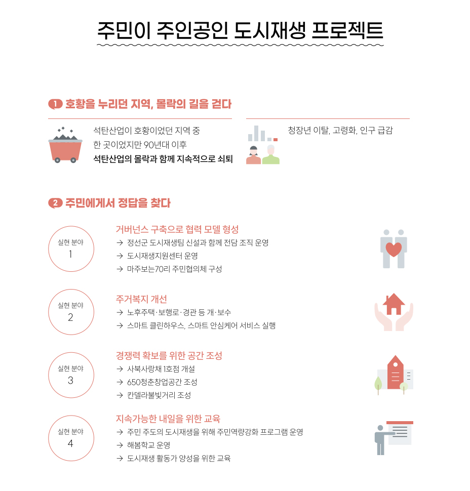 이처럼 정선군 사북읍의 도시재생 사업은 그 무엇보다 주민들이 주체가 되어 ‘주민들에 의한, 주민들을 위한’ 사업으로 거듭나고 있다.