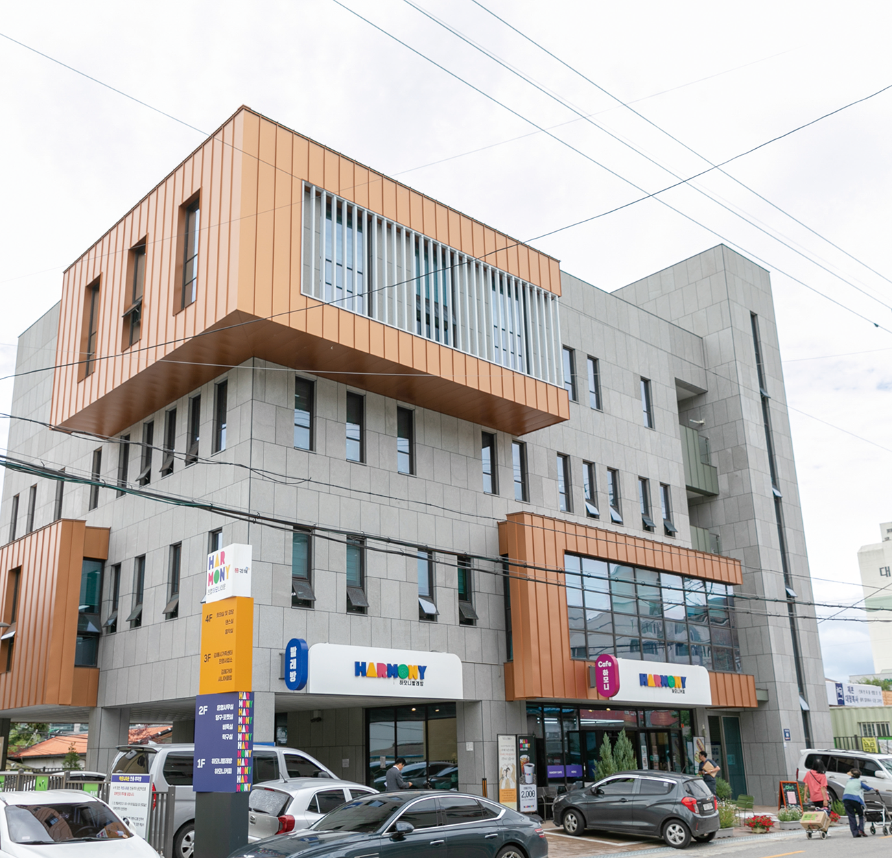 지역거점시설로 거듭나고 있는 ‘하모니타운’은 관련 기관 연계·유치를 통해 교육과 시니어 복지에도 앞장서고 있다. 특히 3층에 위치한 ‘가족센터 진영사업소’는 지역 내 다문화 가정 2,700여 명 및 외국인 근로자들에게 힘을 실어주기 위한 공간으로서 사업 초기부터 논의되어 온 공간이다. 김해 시내에 위치한 지원센터의 분원으로서 일상에 꼭 필요한 지원을 적시에 제공 중이며, 이용객 월 600여 명을 기록하며 성황을 이루고 있다. 가족문화사업, 한국어 교육, 사회적응 교육 등을 시행하며 진짜 화합이란 무엇인지 몸소 실천하고 있다. 한편 ‘가야시니어클럽’은 지역의 시니어들을 위한 통합 복지도 실현한다. 노인들을 위한 일상 속 복지를 끊임없이 고민 중이며 일자리지원사업을 추진해 매월 400여 명에게 솔루션을 제공하고 있다.