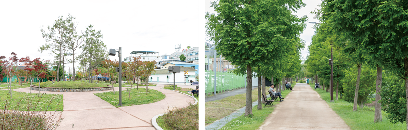 지역 경관 개선을 위해 조성된 ‘하모니숲길’은 김해시의 야심작이라고 해도 과언이 아니다. 2022년 6월에 조성 완료된 이곳은 폐선로를 활용해 주민 화합 공간으로 만든 점에서 주민의 이목을 집중시켰다. 이 자리에 있던 진영읍 경전선 폐선철로는 구·신도시 사이를 관통해 역을 단절시킬 뿐 아니라 쓰레기 불법투기, 불법주정차, 무단경작 등으로 인해 몸살을 앓는 곳이었다. 도시의 경관을 저해하는 것은 물론이며 각종 안전사고의 위험과 우범지대로 변모할 가능성도 있어 최우선 해결과제로 손꼽혀 왔다. 김해시는 이 같은 문제를 극복하기 위해 다양한 방안을 모색했고 공모사업 진행 과정에서 상충되는 규제 사이에서 시행착오를 겪기도 했다. 사업 선정에 있어 주관 부처별 전제조건이 부딪혀 어려움이 있었지만 지속적 협의로 이를 타개할 수 있었다. 그 결과 2022년 국가철도공단의 철도 유휴부지 우수사례로 선정되었고, 경상남도에서 주관하는 2022년 규제혁신 우수사례에서 최우수상까지 수상하며 대외적으로 우수성을 인증받았다.