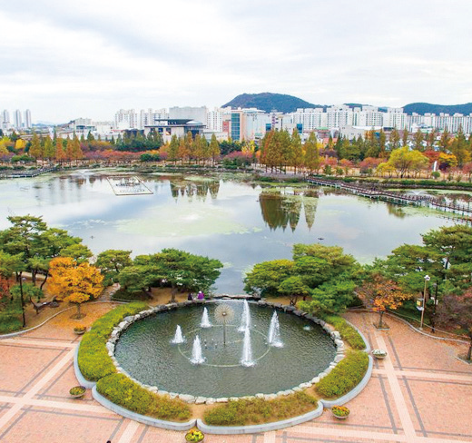 오래전 연꽃이 많이 피어있었다고 전해지며 ‘연지’라는 이름이 붙었다. 넓은 호수에 떠다니는 연꽃과 ‘어리연’은 공원을 둘러보는 이들에게 아름다운 풍경을 보여준다. 호수를 빙 둘러 조성된 산책로에선 무성한 숲을 보며 쉬어가는 시간을 가질 수 있다. 호수의 음악분수는 정해진 시간에 음악과 함께 솟아오르는 시원한 물줄기로 보는 재미를 더한다.