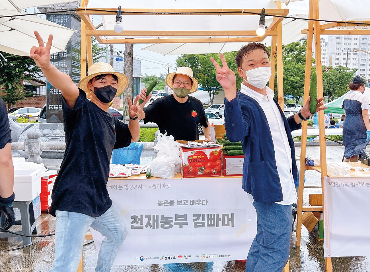 ‘농촌을 보고 배우다’팀은 지역의 바른 먹거리를 제값 받고 판매하는 방법에 대해 고민했다. 단순히 지역 농산물 판매장을 여는 것이 아니라 청년들이 함께하는 문화의 장이 될 수 있도록 고민했고 청년 놀이터와 플리마켓을 진행했다. 청년 놀이터(물놀이, 추억의 오락실 등)를 마련하고 청년 농업인 생산 작물 홍보 및 판매를 위한 플리마켓을 열었다. 김제시 농어촌종합지원센터와 함께 ‘유명인과 함께하는 힐링콘서트’도 진행했다. 소규모 청년들의 문화 공연의 장이 마련되면서 자연스럽게 청년들이 모였고, 플리마켓은 지역주민과 청년들의 신나는 놀이터가 되었다.