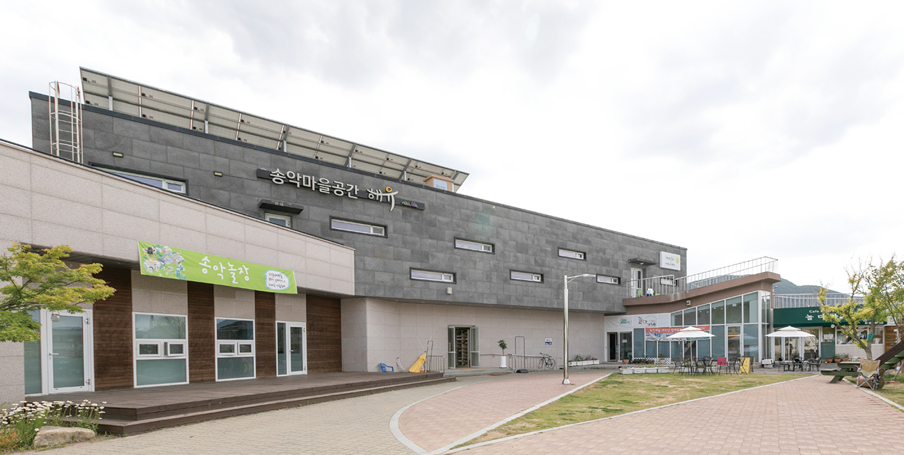 아산시 송악(松岳)은 산촌마을로 자연생태가 잘 보존된 아름다운 청정 농촌마을이다. 송악은 충청남도 아산시 최남단에 위치한 지리적 여건과 대부분 산지로 둘러싸인 지형적 특성으로 각종 개발의 손길이 닿지 않는 지역이었다. 변화가 적어 발전이 더딘 까닭에 ‘낙후지역’으로 구분됐다. 주지하다시피 생기를 잃은 마을은 쇠락의 속도도 빠르다. 과거 송악면도 예외는 아니었다. 면 소재지의 거산초등학교가 폐교 위기에 처했고, 마을은 공가와 폐가가 증가했다. ‘인구소멸’ 및 ‘고령화’와 ‘지역소멸’이란 악순환의 고리가 지역민들에게 각인되었다. 비어 있는 만큼 활력소가 충전되어야 했다. 변화를 시도하고 이를 주도할 기획자가 필요했다. 이에 송악면은 추진위원장을 중심으로 농산어촌개발사업을 통해 면 소재지의 기능을 강화하고 배후지역까지 서비스 기능을 제공하기 위해 사업을 추진하게 됐다. 빈 공간을 활용하여 주민 스스로 ‘송악동네사람들’ 사회적기업을 구축한 것이다. 2011년 송악면은 송악면 소재지 종합정비사업에 착수했다. ‘사랑해유 함께해유 송악마을공간 <해유>’를 위한 서막이 시작된 것이다.