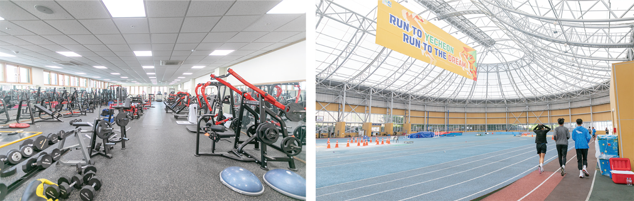 예천군은 또한 국내 유일의 육상전용 실내훈련을 위한 인프라도 구축했다. 연면적 8,720㎡의 육상실내훈련장은 2동 규모의 육상전용 훈련 시설로서 기상상황에 관계없이 언제든지 훈련이 가능하다. 대회 보조경기장 및 전지훈련장소로 활용할 수 있으며 웨이트 트레이닝장, 경사로 훈련장, 150m 트랙, 재활치료실 등 체계적·과학적 훈련이 가능한 각종 부대시설도 운영하고 있다. 실내훈련장 바로 옆 야외에는 하천을 끼고 있는 300m 정도의 모래훈련장도 있다. 이러한 인프라를 바탕으로 예천군은 아시아 최대 권위로 인정받고 있는 아시아 U20 육상선수권대회를 우리나라 최초로 개최했다. 2023년 6월 개최된 이 대회는 경상북도 스포츠 행사로는 가장 규모가 큰 대회였으며 군 단위에서 이러한 대회를 개최한 것도 처음이었다. 이러한 대회를 성공적으로 치름으로써 예천은 육상 메카로서의 입지를 다지고 아시아 육상도시로 부상하는 계기를 만들었을 뿐 아니라 더 많은 국제대회를 유치할 발판도 마련했다.