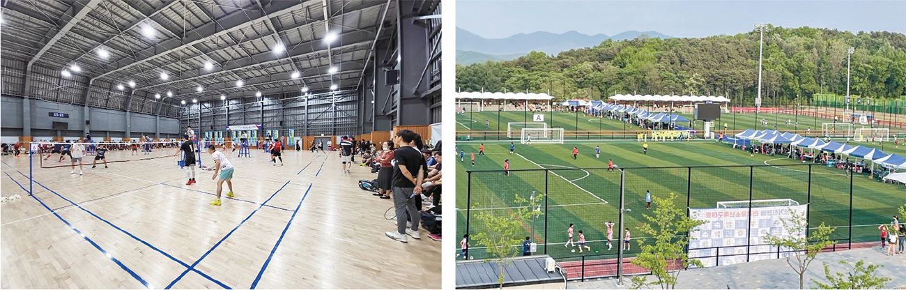 진천군은 ‘생거(生居)진천’으로 통한다. 생거진천은 ‘살아서는 진천에 거하라’라는 말이다. 지금 진천은 생거진천이 현실이 되고 있다. 천혜의 자연환경과 비옥한 농토, 후덕한 인심이 진천을 생거진천답게 했다. 그리고 지역발전을 위해 힘쓴 이들의 노력이 모여 진천군은 7년 연속 1조 원 이상의 투자 유치 달성, 최근 7년간 취업자수 1만 5,600명 증가 및 취업자수 증가율 비수도권 1위 달성 등을 실현하며 가시적인 성과를 거듭 쌓는 중이다. 또한 11년 연속 1인당 GRDP(지역내총생산)의 충북 도내 1위를 발판 삼아 명실공히 경제도시로서 입지를 탄탄히 다지고 있다. 100개월 연속 인구 증가의 기록을 세우며 ‘인구 증가의 기적’이라는 모범 사례를 보여주기도 했다. 여기에 진천종합스포츠타운이라는 화룡점정까지 더했다. 이제 진천은 젊은 도시, 머무르고 싶은 도시, 활력이 넘치는 도시로 변모했다. ‘지방소멸’, ‘인구절벽’이라는 단어가 무색할 만큼 인구, 경제, 문화 모든 부문에서 빠른 성장세를 보이고 있다. 진천종합스포츠타운은 전국적인 규모의 훌륭한 시설이다. 시설 확충 이후 진천은 많은 변화를 가져왔다. 우선 각종 대회 유치를 통한 지역경제 활성화에 기여하고 있다. 체육시설을 기반으로 지역 주민의 건강증진을 도모하며, 국가대표 선수촌과 함께 스포츠 메카 도시로 위상도 정립했다. 양질의 체육시설 제공으로 지역민의 생활체육 수준 향상도 자연스럽게 이루어지는 추세다. 또한 음성군과 진천군의 군계에 위치하여 지역 간 생활체육 동호인들의 상호 교류가 빈번하게 이루어지고 있는 점은 지역민뿐만 아니라 타 지역 사람들까지 아우르고 있음을 증명한다.