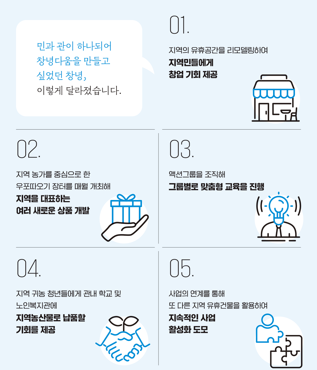 창녕군이 일군 성과에는 지역민이 있다. 그들의 웃음이 있다. 지금이 변화의 시작이라고 말하는 창녕군과 추진단, 액션그룹이 ‘함께’ 그리는 미래가 더욱 기대되는 이유는 바로 그래서가 아닐까.