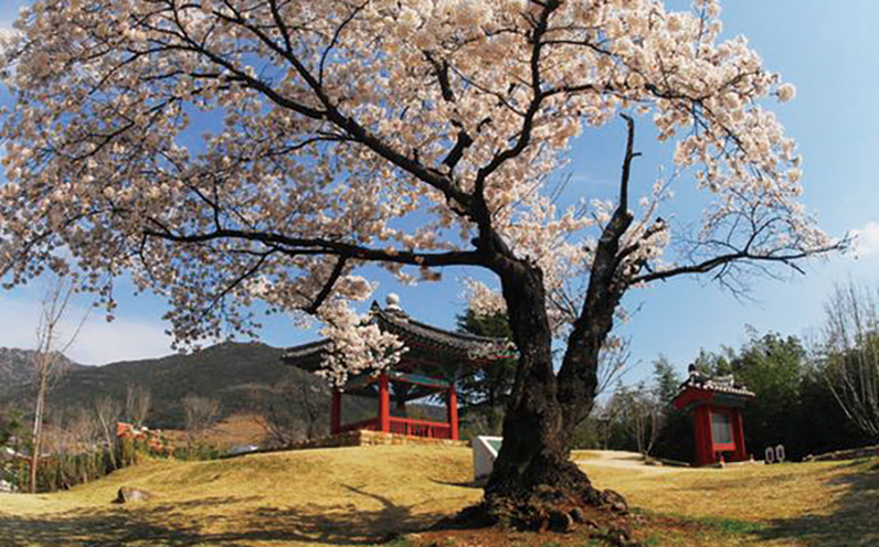 봄철의 벚꽃과 문화유산이 살아 숨 쉬는 공원