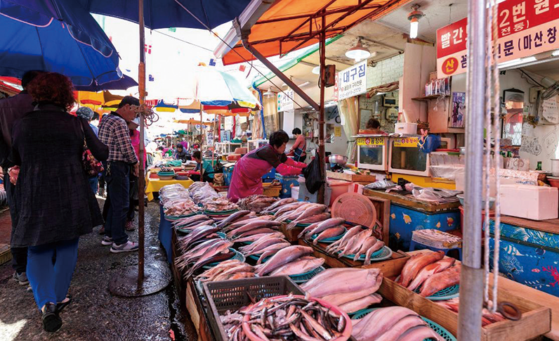 인근에 위치한 국제시장, 부평깡통시장과 함께 부산을 대표하는 전통시장이다. 한국 최대 어시장 중 하나로 각종 생선과 조개는 물론 랍스터에서 백상아리, 개복치, 거대 문어까지 없는 수산물이 없다. 1980년에 문을 연 신동아수산물시장 1층에는 활어 판매와 즉석에서 싱싱하고 맛있는 회를 맛볼 수 있으며 2, 3층에는 건어물 및 해산물 판매와 생선횟집이 자리하고 있어 새로운 자갈치 시장의 명물로 떠오르고 있다.