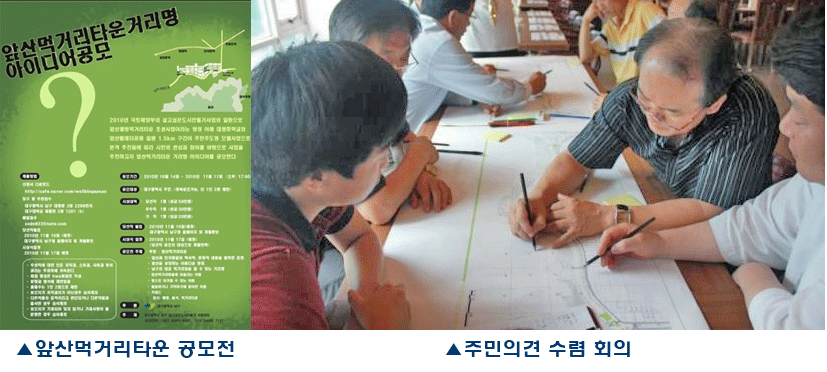 한편 남구청은 주민들의 주인 의식 고취를 위한 또 다른 방안으로, 거리명 공모를 개최했다. 주민들이 내놓은 거리명 중 최종 5개를 선발하여 주민 투표에 부쳤다. 지역주민의 관심을 유도하기 위함이었다. 이 과정을 통해 ‘앞산 먹거리타운’에서 지금의 ‘앞산 맛둘레길’이란 명칭이 얻어졌다.