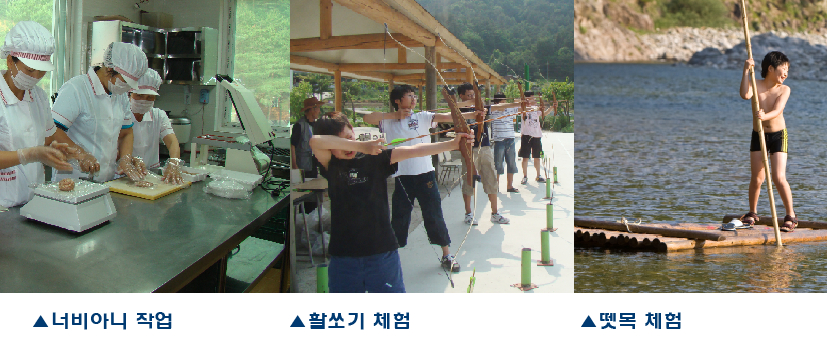 해담마을은 총 가구 수 76세대, 인구 186명의 작은 마을이다. 게다가 노령인구가 22%를 차지해 여러모로 열악한 환경이었다. 하지만 마을에서는 1995년부터 방갈로 8동을 가지고 마을 휴양지를 운영해 온 경험이 있었다. 그 경험이 바탕이 된 덕인지 주민들은 해담마을이 가지고 있는 잠재력을 믿고 사업에 모두 적극적으로 협조했다. 더군다나 해담마을은 2007년에 정보화산업마을 유치 후 숙박객이 크게 늘며 마을의 시설을 확충할 필요를 느끼고 있었다. 이번 사업은 기존의 생산소득과 숙박시설에 부족한 분야를 확충하고 체험시설을 늘리는 것이 목표였다.