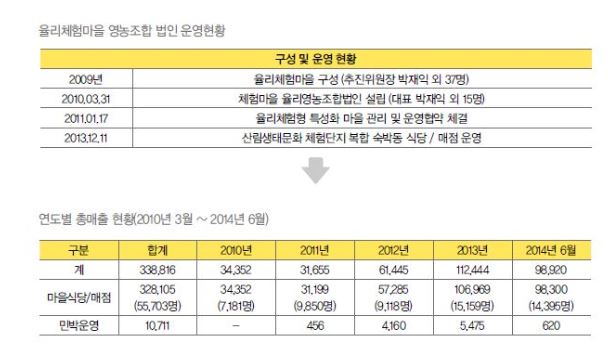 - 율리 체험마을 영농조합 법인 운영으로 일자리 창출 및 주민 소득 증대에 기여