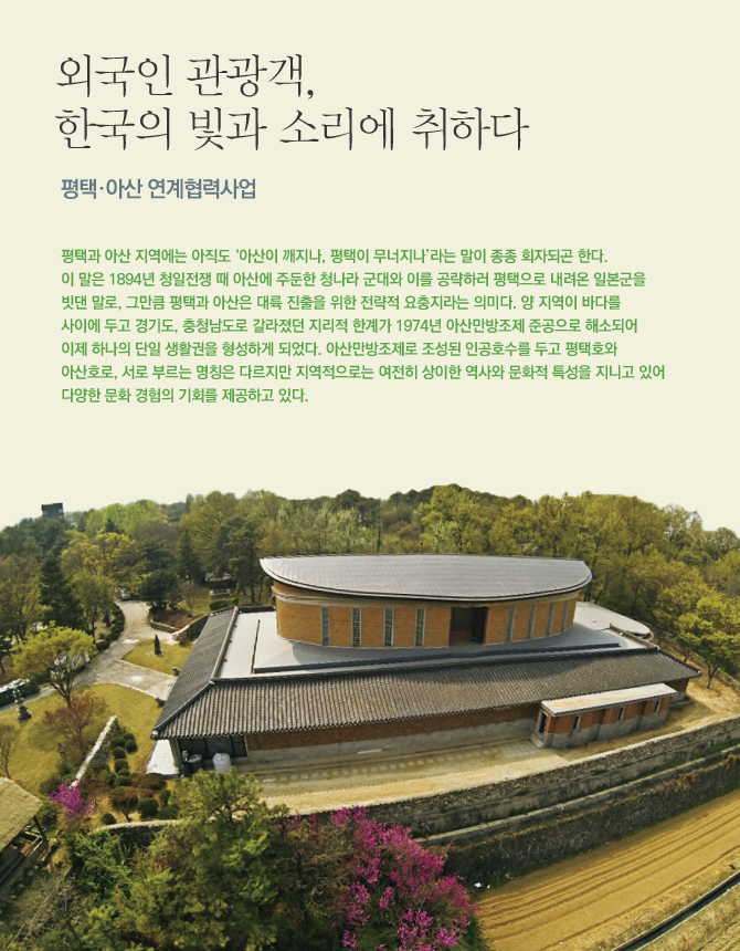 이번 사업을 통해 평택과 아산이 처한 지역적 한계를 극복하려는 다양한 프로그램이 펼쳐질 수 있었다. 평택의 소리 콘텐츠와 아산이 지닌 다채로운 관광자원이 더욱 빛을 발하게 된 것이다. 문화향유 전시관 시설의 사각지대였던 평택에 지영희국악관이 들어섬으로써 향후에도 지속적으로 외국인은 물론 내국인에게도 기존의 평택농악이나 민요에 그치지 않고 다양한 국악 체험 프로그램이 함께 제공될 수 있을 것이다. 현대적인 복합문화공간이 절실했던 아산에는 구정아트센터가 새롭게 조성됨으로써 전통 민속뿐만 아니라 다양하고 풍부한 전시 콘텐츠를 국내외 관광객에게 선보일 수 있게 되었다. 또한, 국내 대표 은행나무길이 젊은 세대를 위한 아트거리로 재탄생되고 빛 테마거리로 거듭남으로써 관광자원 활용의 계절적인 한계를 극복하고 다양한 연령대를 흡수할 수 있는 토대가 마련되어 연중 관광객을 유치할 수 있을 것으로 기대된다.
